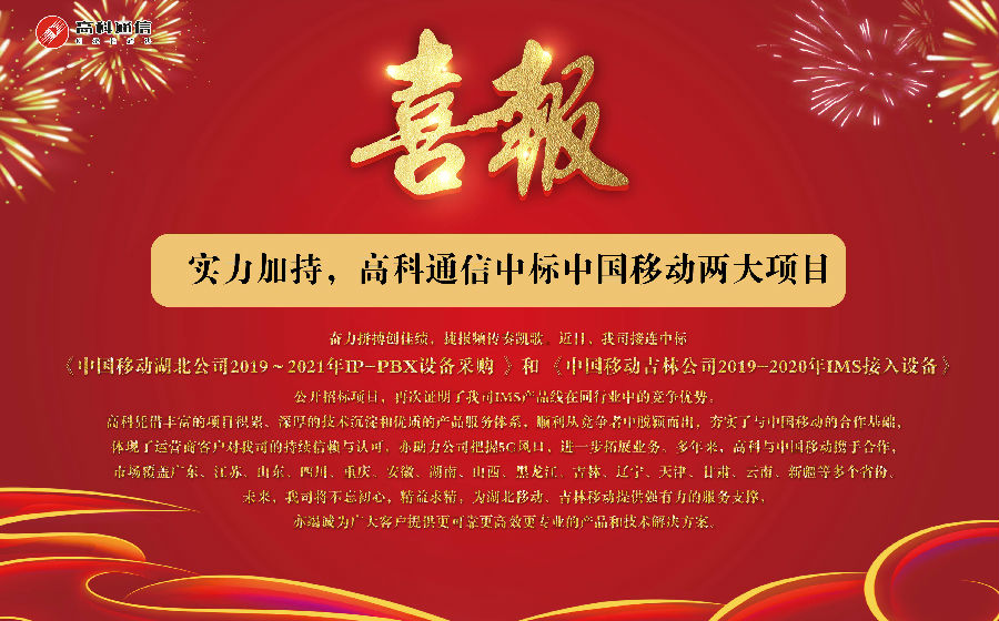 喜報(bào)|熱烈祝賀高科成為湖北和吉林移動(dòng)IMS設(shè)備供應(yīng)商