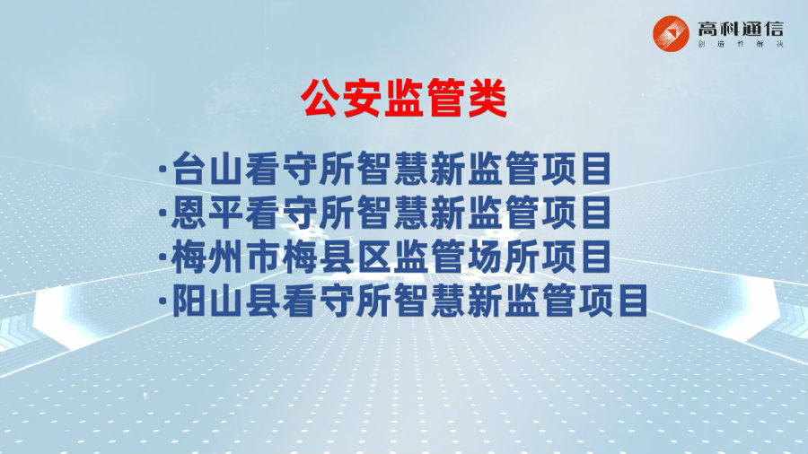公司簡(jiǎn)介廣州市高科通信技術(shù)股份有限公司成立于1993年,公司圍繞智慧城市、通信接入兩大業(yè)務(wù)板塊,集自主研發(fā)、解決方案設(shè)計(jì)、生產(chǎn)制造、銷售服務(wù)于一體,致力為政府信息化部門、政法委、公檢法等相關(guān)部門以及國(guó)內(nèi)三大運(yùn)營(yíng)商、國(guó)外運(yùn)營(yíng)商提供頂層規(guī)劃設(shè)計(jì)、方案解決和定制服務(wù)。在智慧城市領(lǐng)域,高科承建了300多個(gè)項(xiàng)目,全面覆蓋公共安全、平安城市、雪亮工程、智慧交通、信創(chuàng)、部隊(duì)、教育、金融等。近年來(lái),公司深耕公安智慧新監(jiān)管建設(shè),推出智慧新監(jiān)管全要素全流程數(shù)字化解決方案,全面賦能公安監(jiān)管一體化應(yīng)用與實(shí)戰(zhàn)業(yè)務(wù)支撐。高科通信始終秉承“責(zé)任、抱負(fù)、激情”核心價(jià)值觀,肩負(fù)成為“第一公里接入專家及智慧創(chuàng)新及應(yīng)用專家”使命,不斷推進(jìn)5G、人工智能、大數(shù)據(jù)、智能感知等核心技術(shù)的產(chǎn)業(yè)落地應(yīng)用,堅(jiān)持“創(chuàng)造性解決”的理念,攜手合作伙伴共創(chuàng)數(shù)字生態(tài)!